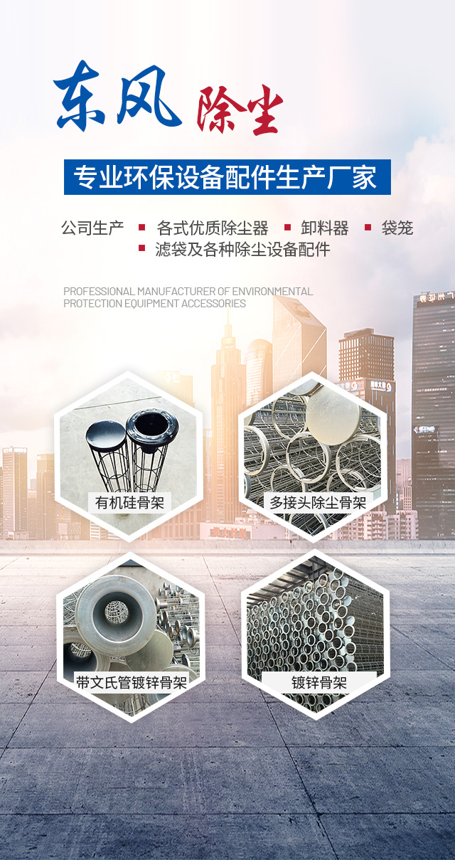 東風產品 品質保證主要產品: 骨架﹙袋籠﹚ / 濾 袋 / 卸料器﹙卸灰閥﹚ / 除塵器 / 除塵設備配件